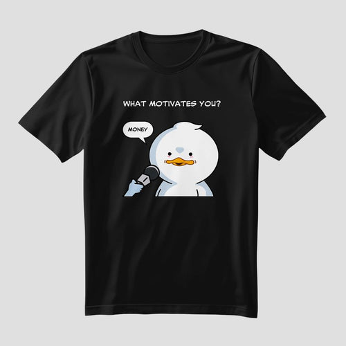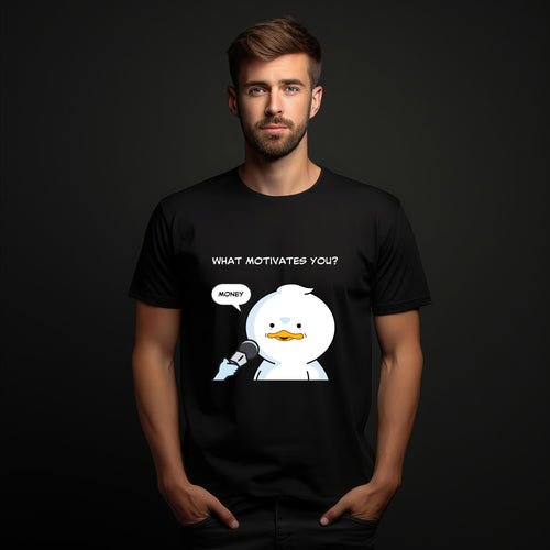 “What motivates you?” QUACKU keeps it real, it’s MONEY. This hilarious and painfully relatable t-shirt is for every grinder, crypto degen, startup hustler, or anyone chasing the bag. Whether you're trading tokens or stacking fiat, wear your motivation proudly. Perfect for meme lovers, investors, and the Web3 crowd.